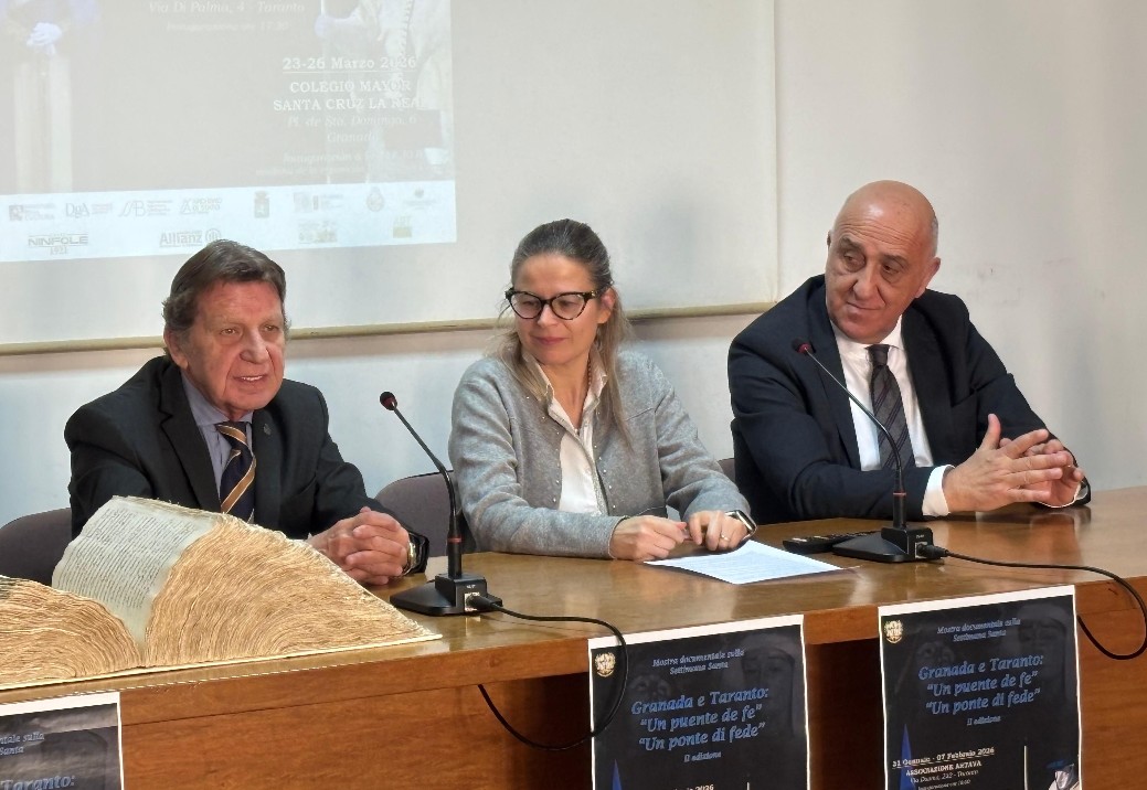 Presentata nella sede dell’Archivio di Stato di Taranto la II edizione della mostra “Granada e Taranto – Un puente de fe / Un ponte di fede”, un progetto culturale di respiro internazionale che intreccia le tradizioni della Settimana Santa delle due città attraverso immagini, documenti e manufatti artigianali, con l’obiettivo di rafforzare soprattutto il dialogo culturale tra Taranto e Granada.