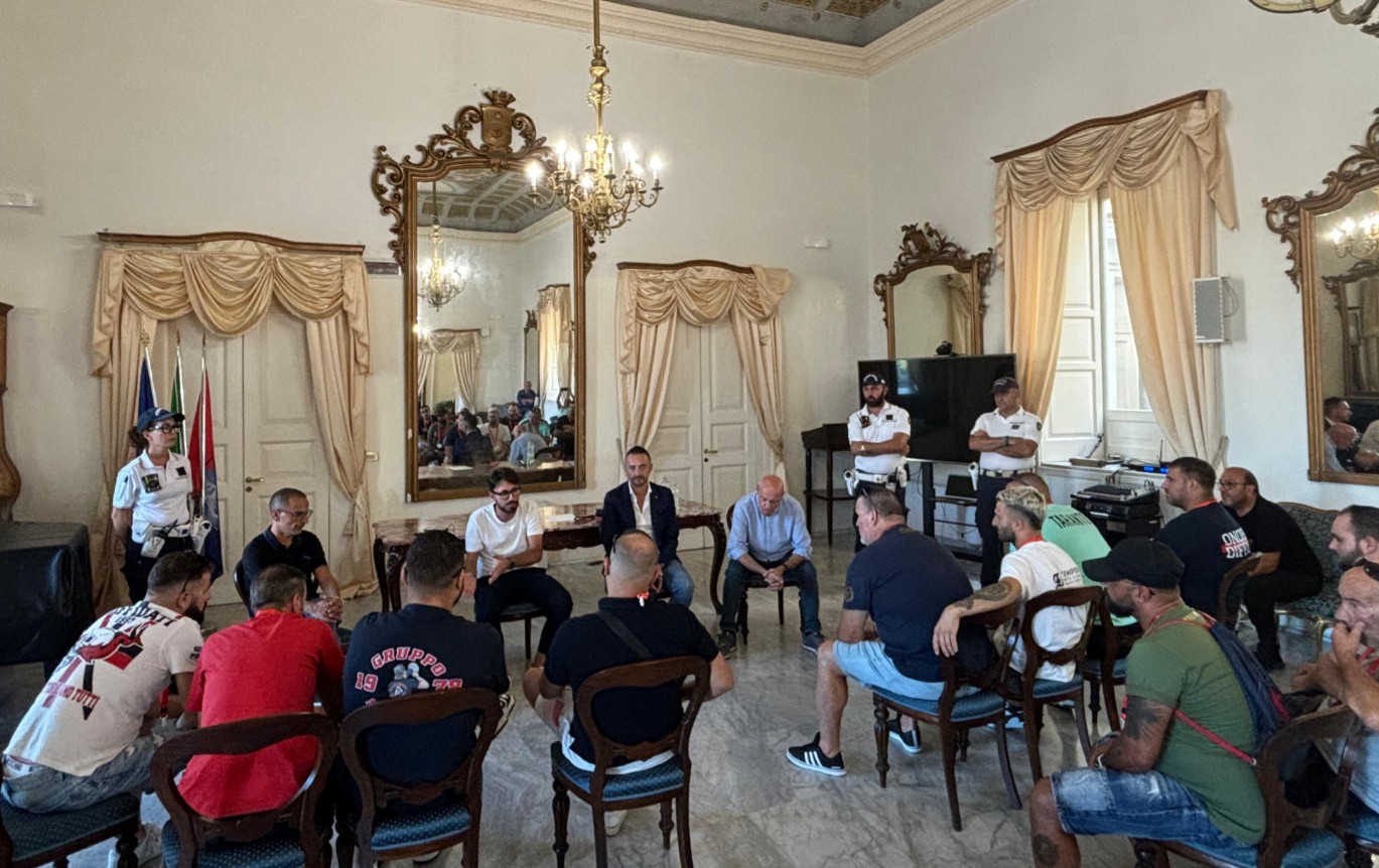 Una delegazione di ultras del Taranto, nel pomeriggio di giovedì 31 luglio, ha incontrato a Palazzo di Città il vice sindaco di Taranto, Mattia Giorno, e gli assessori Francesco Cosa e Gianni Cataldino.