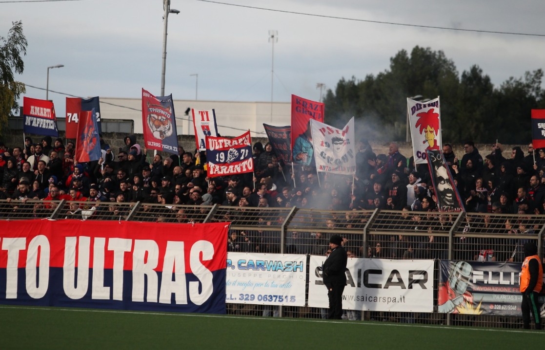I fatti di violenza provocati dai tifosi del Taranto nel post partita di Taranto-Acquaviva disputata a Manduria, hanno generato l’immediata sanzione degli organi giudicanti. Gara da giocare a porte chiuse contro il Bisceglie in programma domenica 22 febbraio e multa di 1.000 euro. Questo il dispositivo del giudice sportivo nella sua interezza.