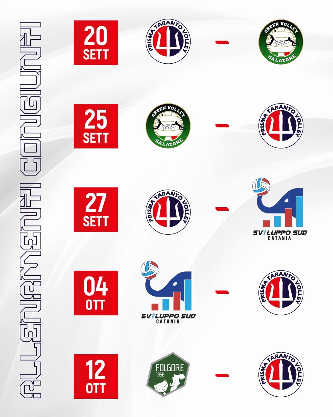 Il primo allenamento congiunto è fissato per venerdì 20 settembre, quando Taranto affronterà Galatone in casa. Il ritorno si disputerà mercoledì 25 settembre in casa dei salentini.