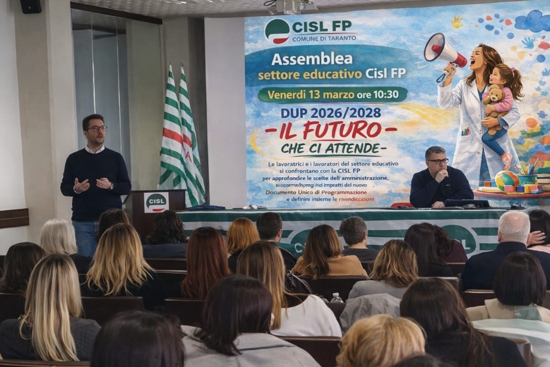 È quello che si è respirato ieri mattina nell’assemblea convocata dalla Cisl FP del Comune di Taranto per discutere del DUP 2026/2028 e del futuro del personale educativo. Una sala gremita di educatrici, operatori e rappresentanti sindacali ha dato vita a un confronto serrato, in cui il tema dei servizi per l’infanzia si è intrecciato con quello della dignità del lavoro pubblico.